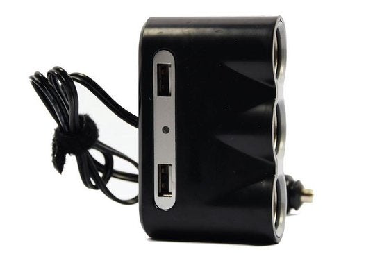 Auto 12V Splitter Stekkerdoos 3-voudig met 2 USB Poorten - Zwart