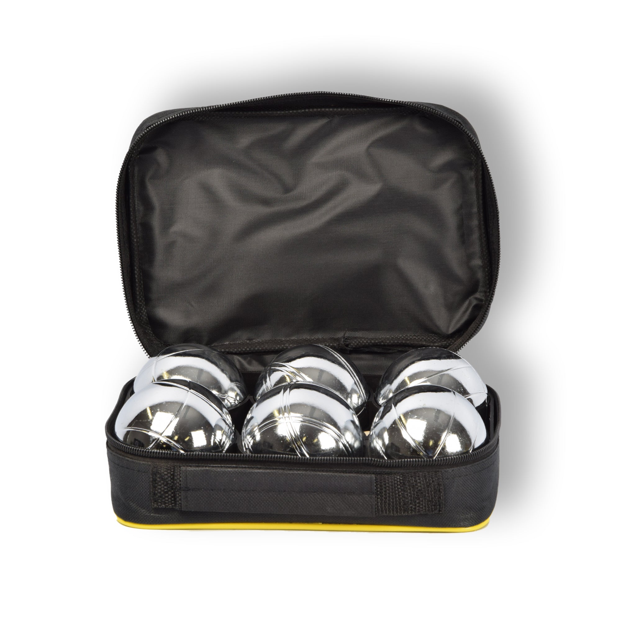 Onze Jeu De Boules set is vervaardigd van hoogwaardig metaal met een vulling van verchroomd staal, wat zorgt voor duurzaamheid en een professionele uitstraling. Met een gewicht van 725 gram per bal en een diameter van 7.3 cm, liggen de ballen perfect in de hand voor nauwkeurige worpen.