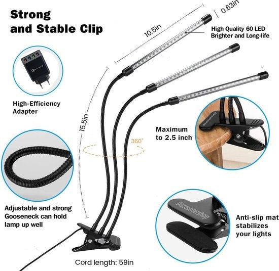 Kweeklampen voor Planten met USB oplader/adapter 3.0 - Groeilamp - LED Full Spectrum - 40 Watt - Automatische Timer 3-9-12 uur - 3 stuks LED