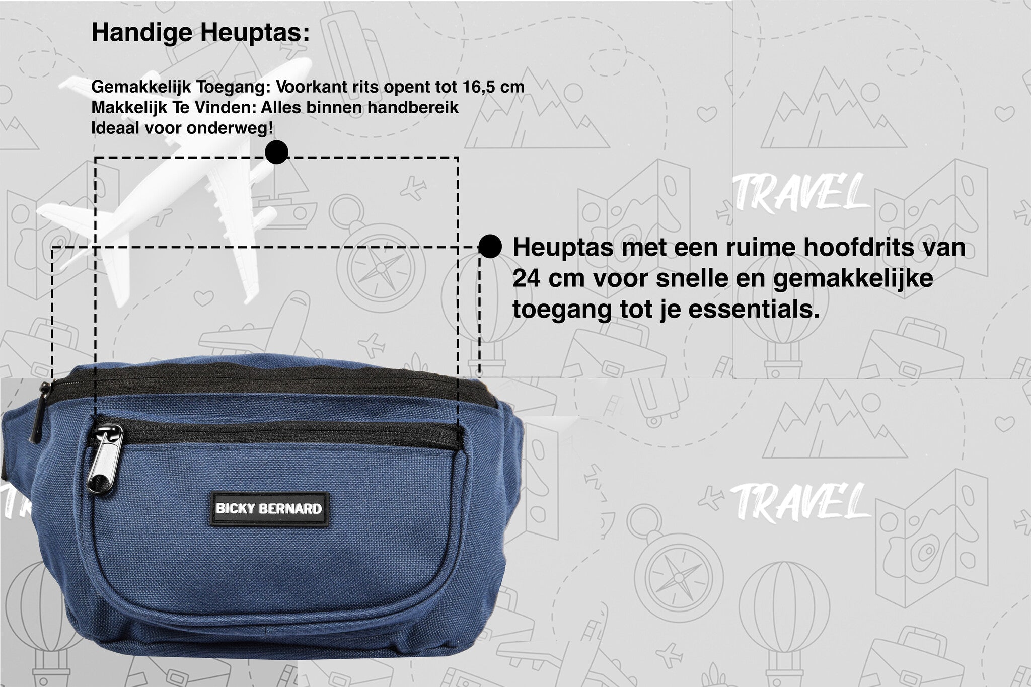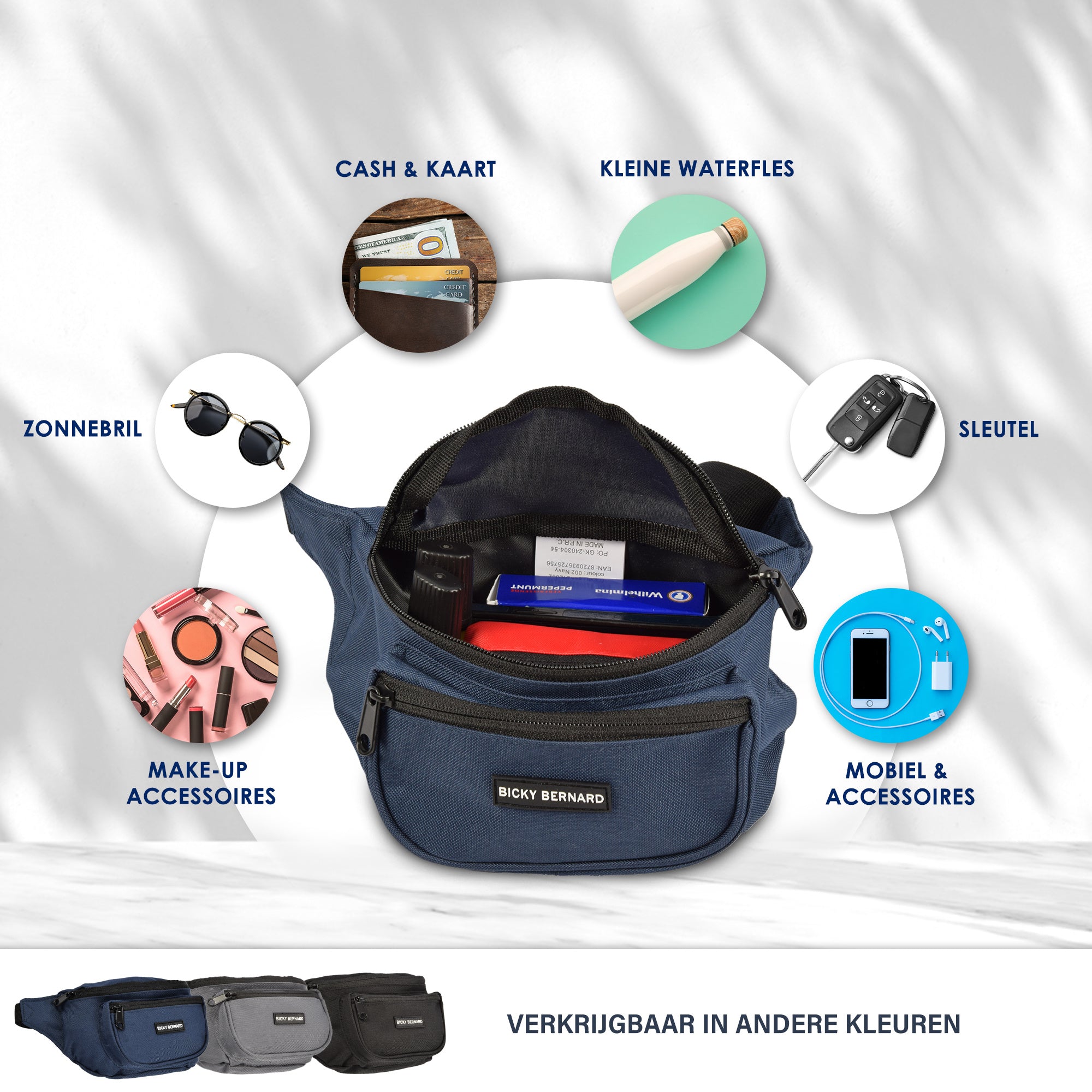 Ben je op zoek naar trendy heuptassen voor dames en heren? Deze heuptas dames festival van Bicky Bernard is een multifunctionele en betrouwbare keuze. Of je nu een heuptasje online kopen wilt voor dagelijks gebruik, een buiktasje vrouwen zoekt voor festivals, of een heuptas heren voor wandelen en reizen, dit unisex fanny pack voldoet aan al je wensen.
