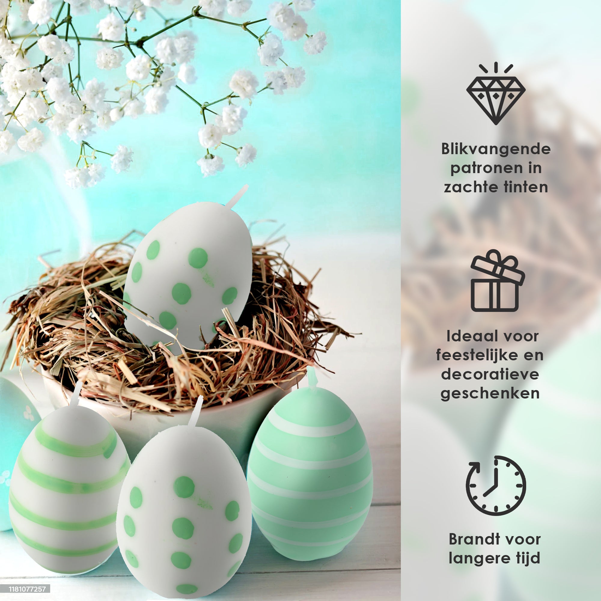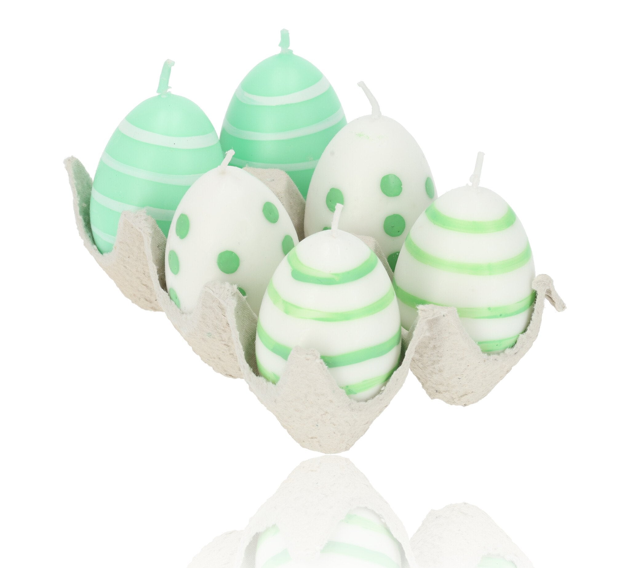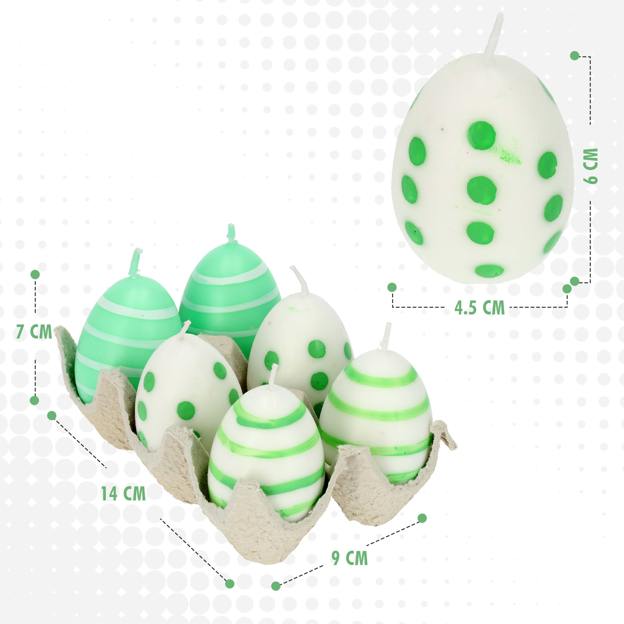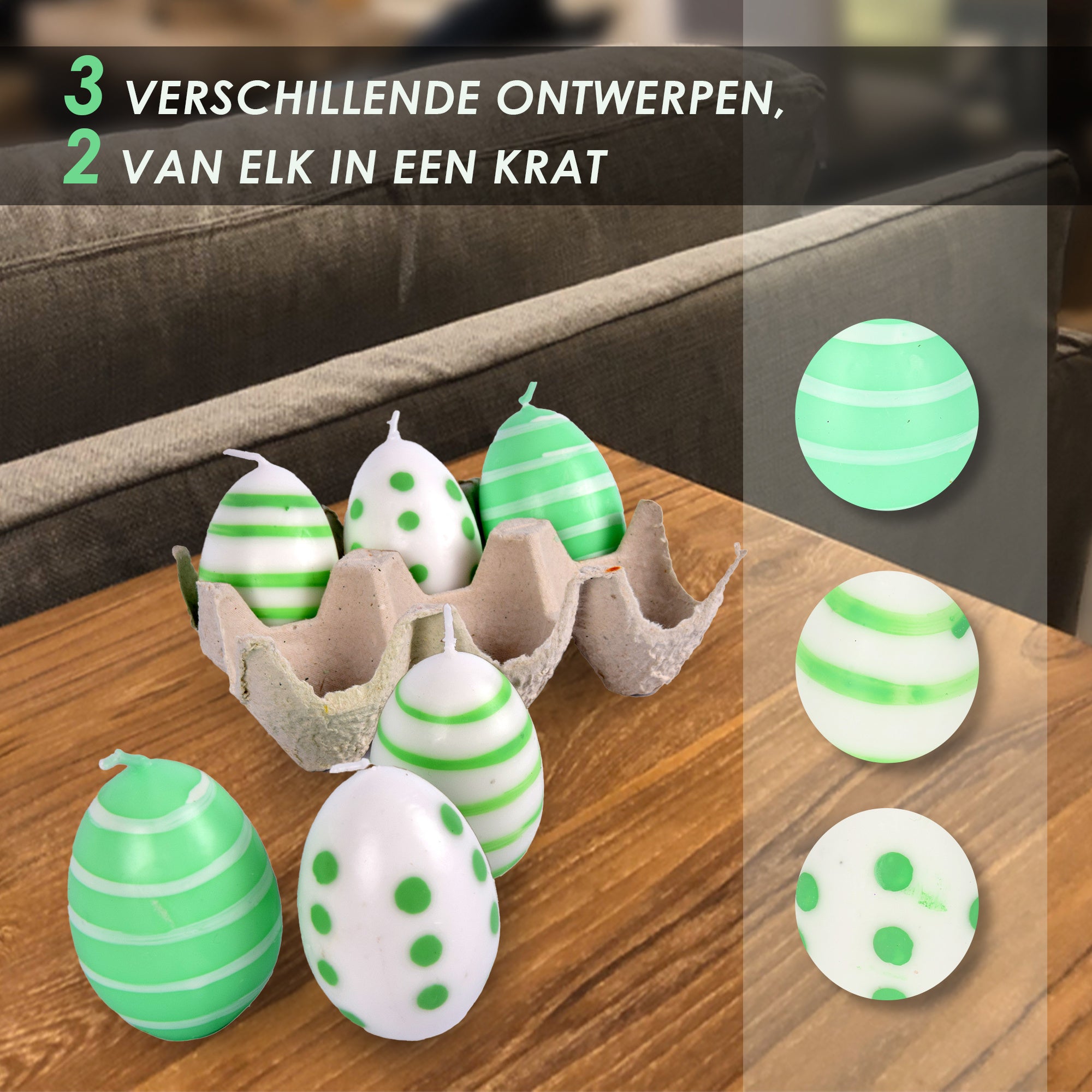 Set van 6 Ei Kaarsen – Groen/Wit – Perfecte Paasdecoratie