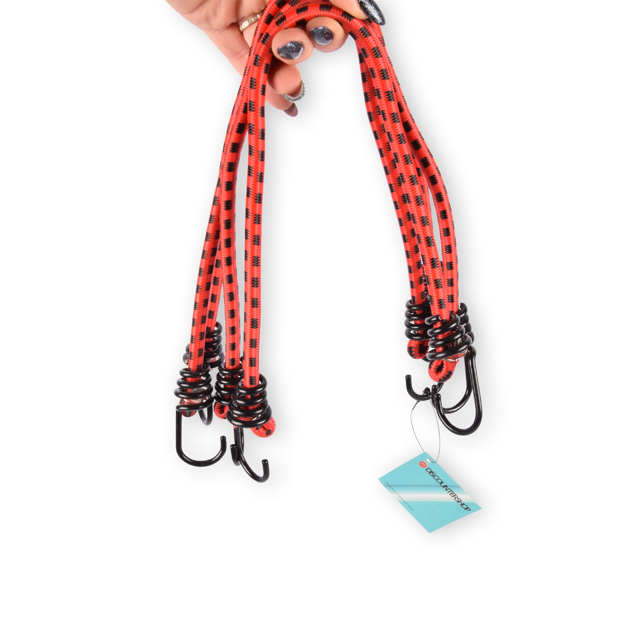 Snelbinder Set – 4x Rood – 45cm – Snelbinders Fiets met Haak – Voor Bagagedrager & Camping