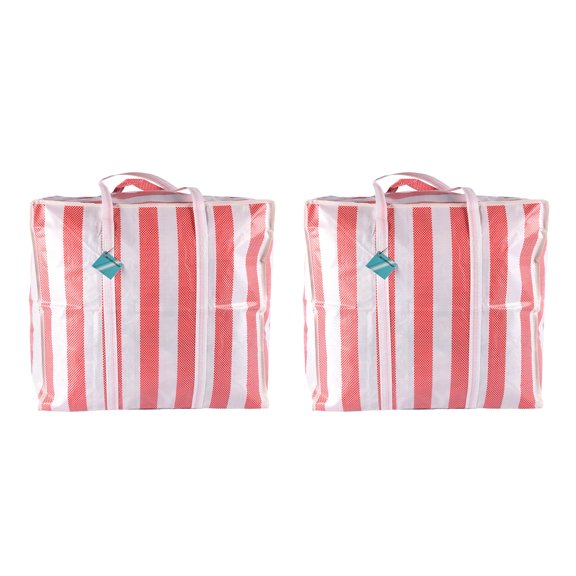 Stijlvolle Boodschappentas met Rits - Rood-Wit - 55cm x 30cm x 50cm - 360g - 2 stuks - 82 Liter