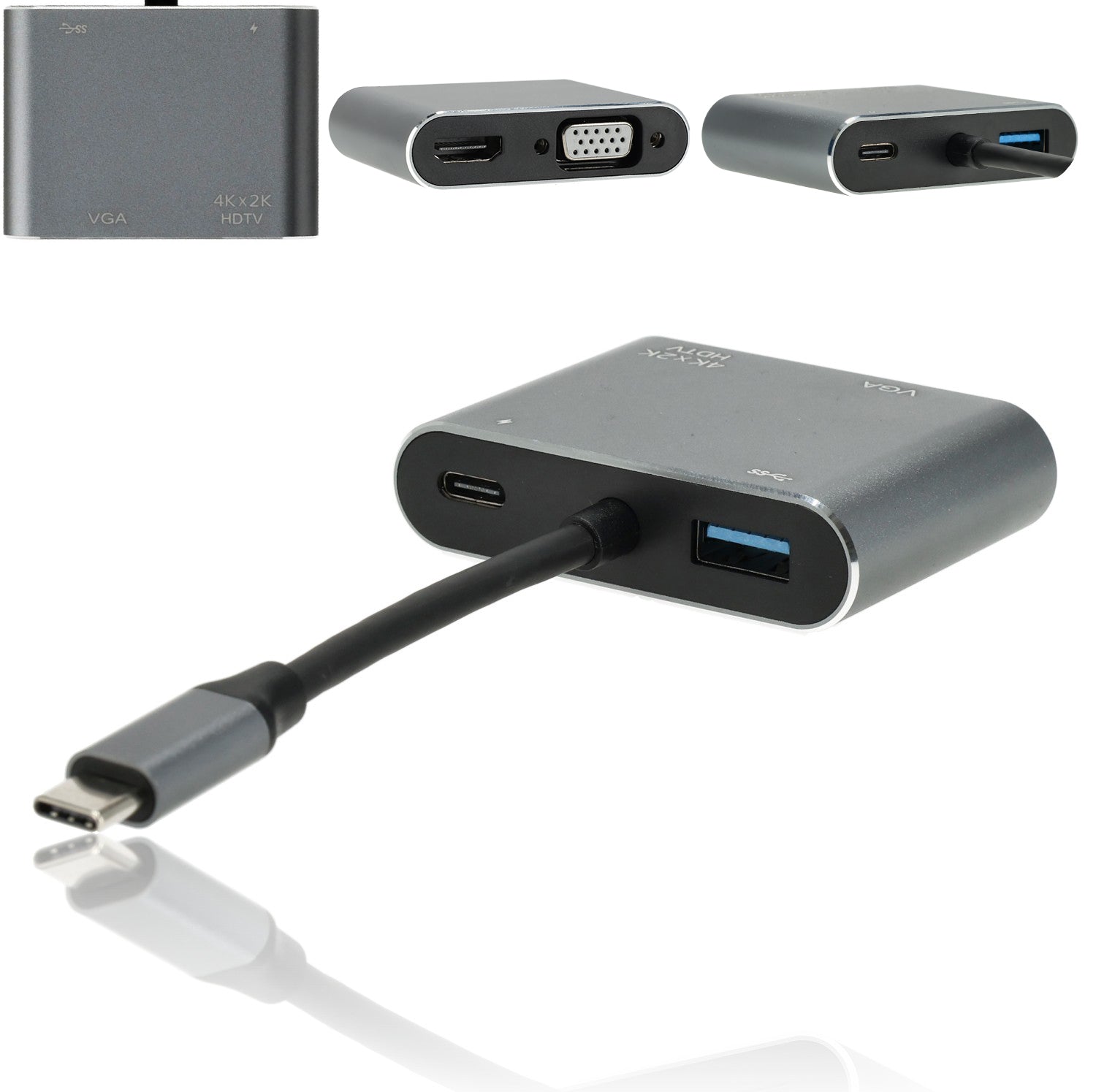 USB-C naar HDMI & VGA Adapter 4-in-1 – Verloopstuk met 4K HDMI, USB 3.0, USB-C Opladen – Geschikt voor MacBook, Laptop, iPad, Chromebook, Samsung & Meer