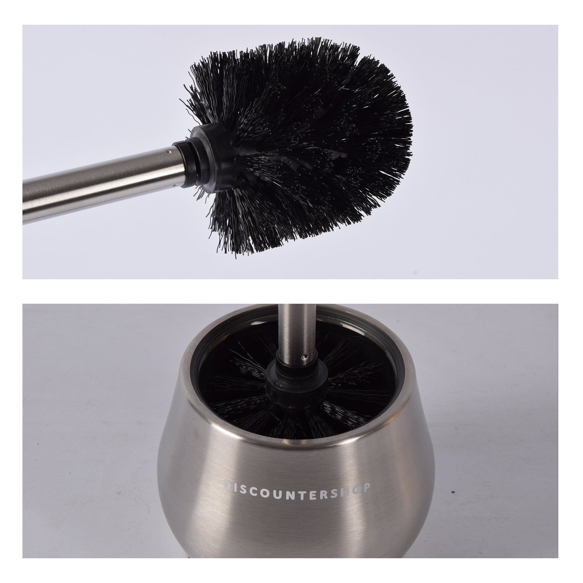 Deze toiletborstel en toiletborstelhouder set is ontworpen met zowel stijl als functionaliteit in gedachten. De zilveren kleur en het elegante ontwerp passen perfect bij elke badkamerinrichting. Het roestvrijstalen materiaal zorgt voor duurzaamheid en een lange levensduur.