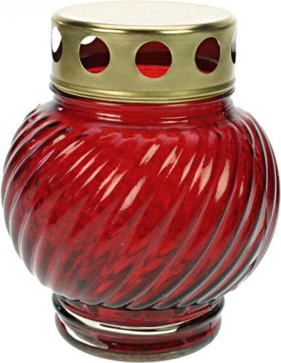 Rode Grafkaars in Glas – Herdenkingskaars 36 Uur Brandduur