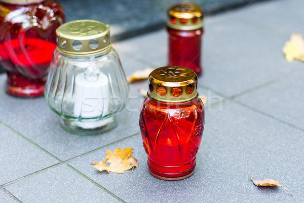 Steek aan bij een graf, gedenkplek of thuis als brandende kaars voor overledenen